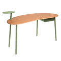 Bureau NUAGE en chêne naturel – 140 x 74 cm – pour intérieur – marque française FERMOB®. Ce bureau associe la structure en acier emblématique de la marque, protégée par deux couches de peinture anticorrosion de haute qualité, à un plateau en chêne massif naturel. Il se distingue par sa forme courbée, douce et éthérée, inspirée des nuages, évoquant le calme et la fluidité. Le bureau dispose d’un tiroir intégré et d’un plateau pivotant à 360°, idéal pour poser une lampe, des objets du quotidien ou une petite plante. Offrant un grand confort d’utilisation, il est parfait pour créer, lire ou télétravailler. Compact mais spacieux, il s’intègre naturellement dans toutes les pièces de la maison — contre un mur ou au centre, comme une île créative.