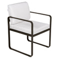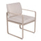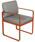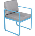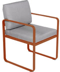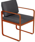 Chaise BELLEVIE avec accoudoirs pour OUTDOORS de la marque française FERMOB®. La structure est en aluminium avec deux couches de peinture extérieure très résistante et de haute qualité. Grâce à ce tissu d'extérieur 100% acrylique teint masse, résistant aux taches, à la moisissure, à la déchirure et à l'abrasion, mais aussi grâce à sa structure 100% aluminium recouverte d'une peinture poudre polyester, votre chaise de salle à manger Bellevie résiste aux intempéries et aux climats les plus rudes. Le coussin de dossier est équipé d'une poche, qui se glisse sur la structure afin de cacher la partie métallique du dossier de votre fauteuil. Les coussins d'extérieur sont en TTE et en polyuréthane indéformable conçus pour que vous puissiez profiter d'une conversation animée ou d'un repas dans votre salon ou votre jardin.